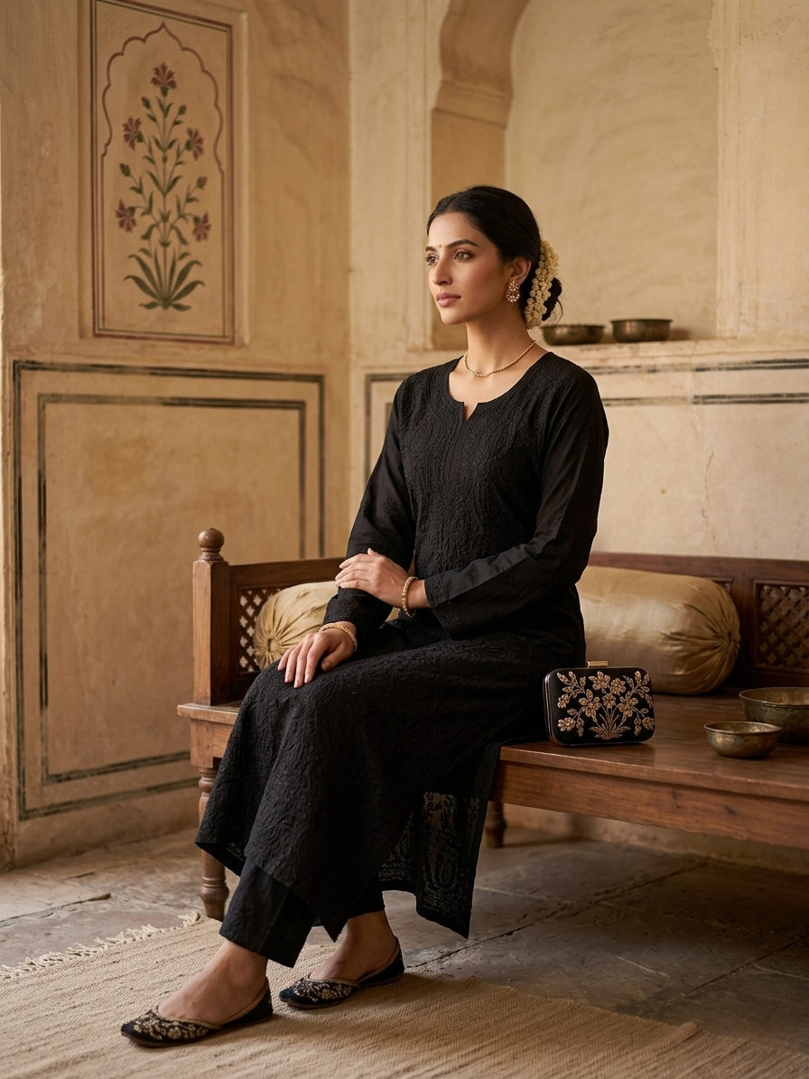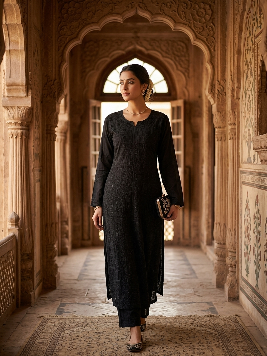 Black Khush Rang Gulabi Dhaga Kurta Set