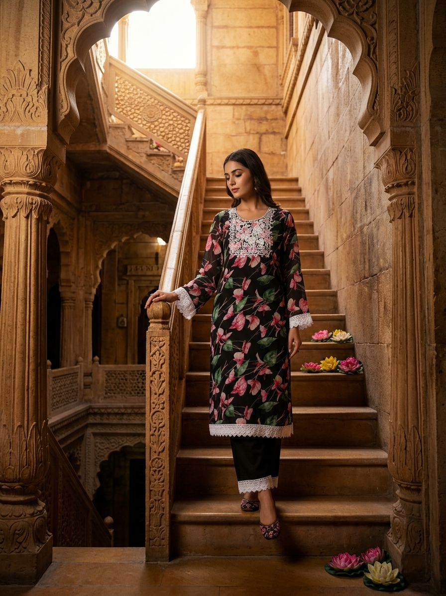 Gulabi Dhaga’s Raha Kurta Set in viscose Georgette